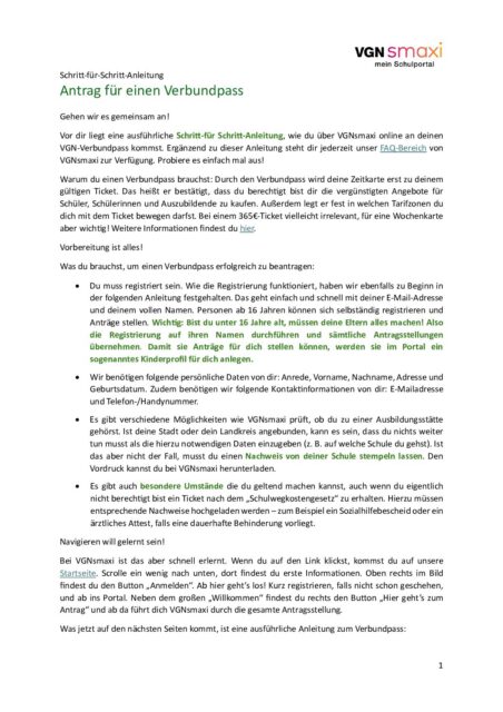 Schritt-für-Schritt-Anleitung, Antrag Verbundpass VGN